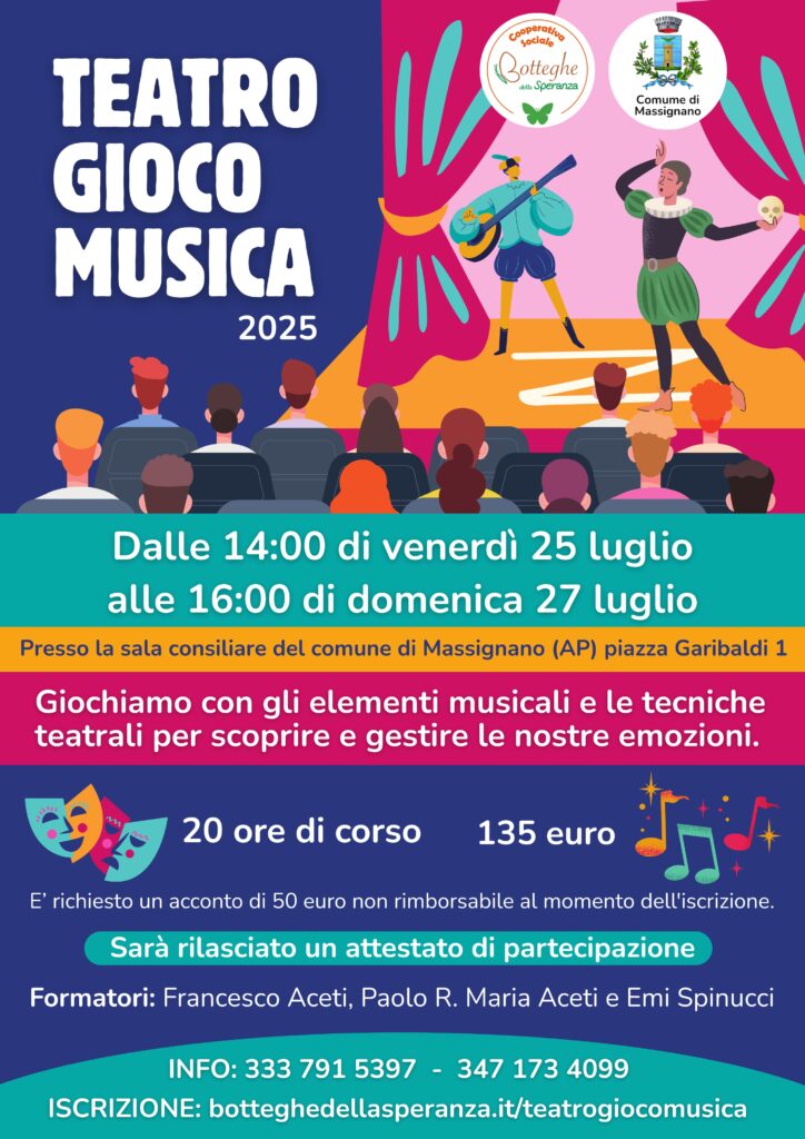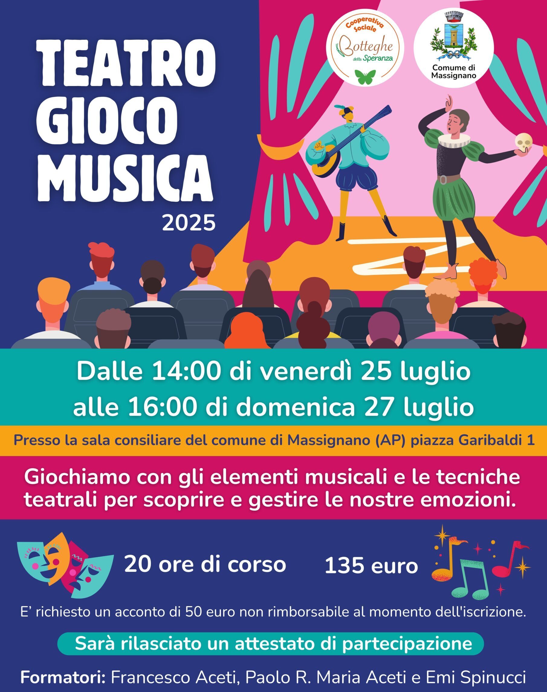 Il costo del corso è di 135€ ed è richiesto un acconto non rimborsabile pari a €50, da effettuare al momento dell’ iscrizione tramite bonifico (IBAN IT06I0306913506100000005338), indicando, oltre al proprio NOME E COGNOME, la causale quale ACCONTO TEATRO GIOCO MUSICA